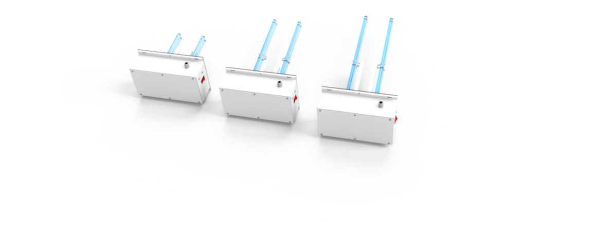 The Defender family includes a range of flange modules with two “U” lamps of different sizes (from 20 to 50 cm) and power ratings (from 70W to 190W) protected by a stainless steel grid.